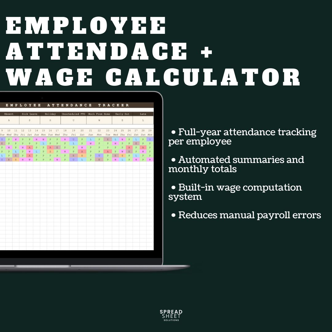 πΒ Sample Preview: View Sample Employee Attendance Tracker + Wage Calculator Spreadsheet
