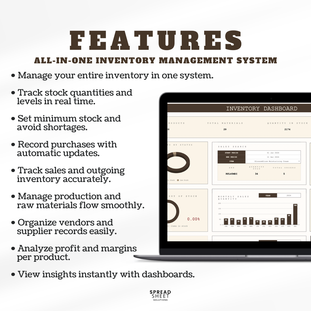 Ideal for small business owners, resellers, or manufacturers who need to track products, purchases, and sales in one place.
